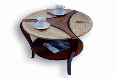 Variety of home office, bedroom, bathroom and living room furniture designed and made by MJSofLondon. . Different design styles and techniques of execution where used to complete these bespoke tables, desks cabinets, chests of drawers, bedside tables, vanity units![]() | Three legged coffee table. The table top is made with Avodire, Sapele and black dyed Poplar veneer. Hand polished with shellac to the high gloss finish. he worktop diameter is 27in (70cm) and the height is 17in (45cm) | |