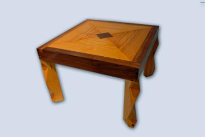 | This sturdy looking coffee table is one of the first items to come out of MJS workshop . The shapes and lines on this table are referring to traditional Baltic crafts style . The originality of the design and engineering is undisputable . All made out of solid yellow pine and walnut . It is rather heavy. High gloss finish with hand applied button French polish .W2 5in (64cm), L25in (64cm), H 171/2in (45cm) | |
