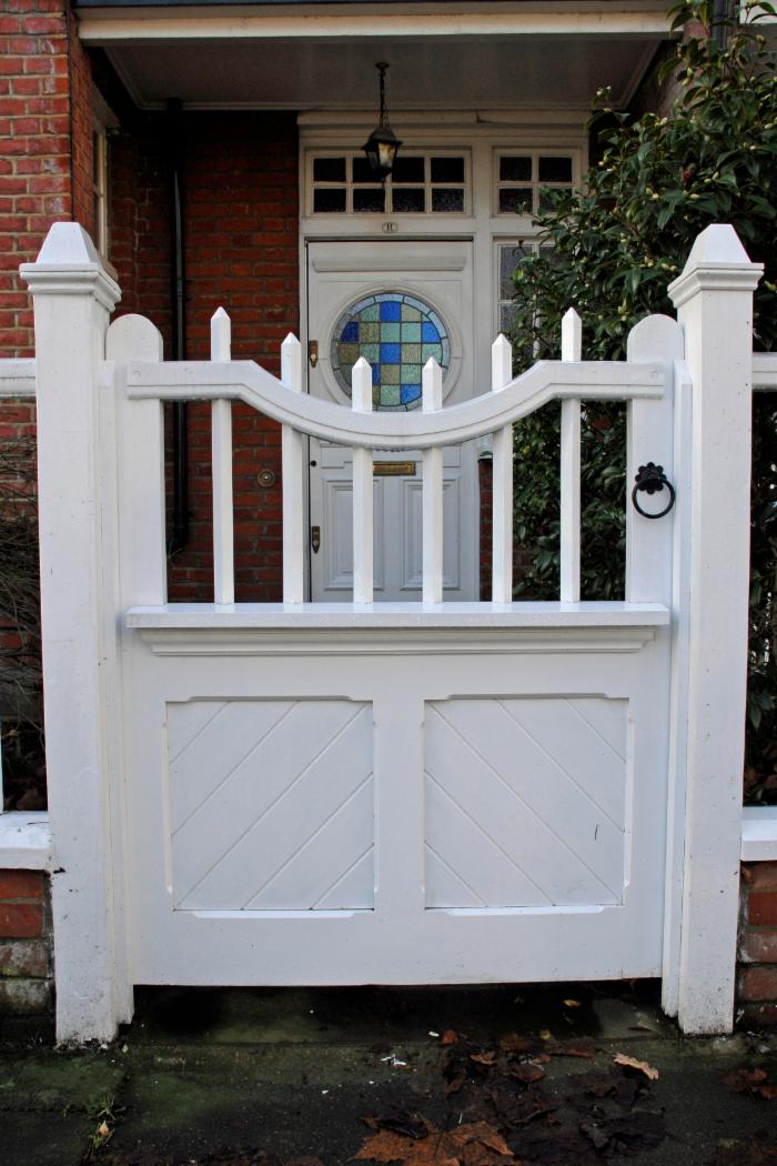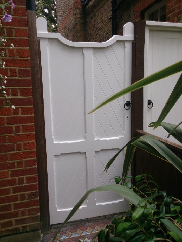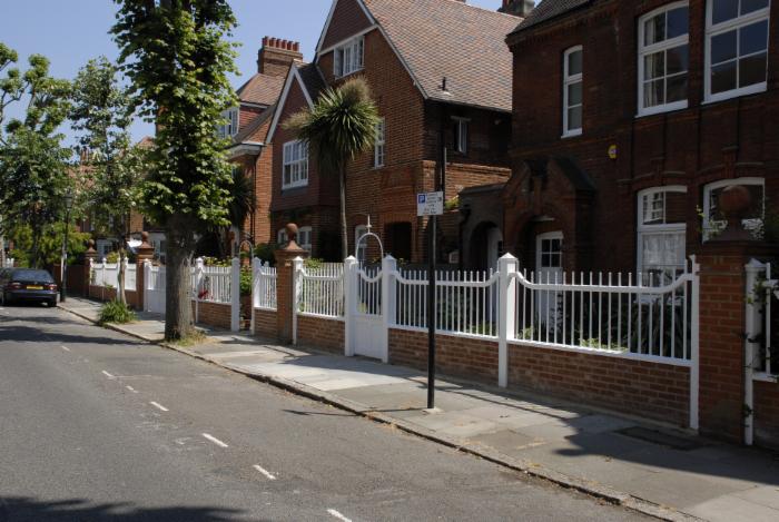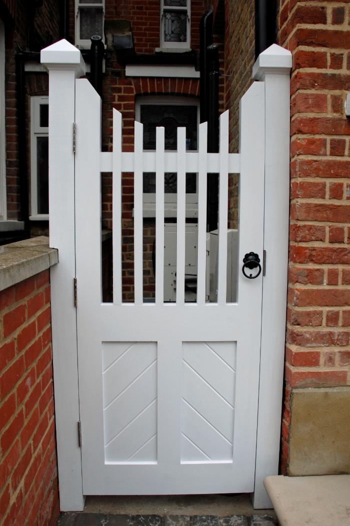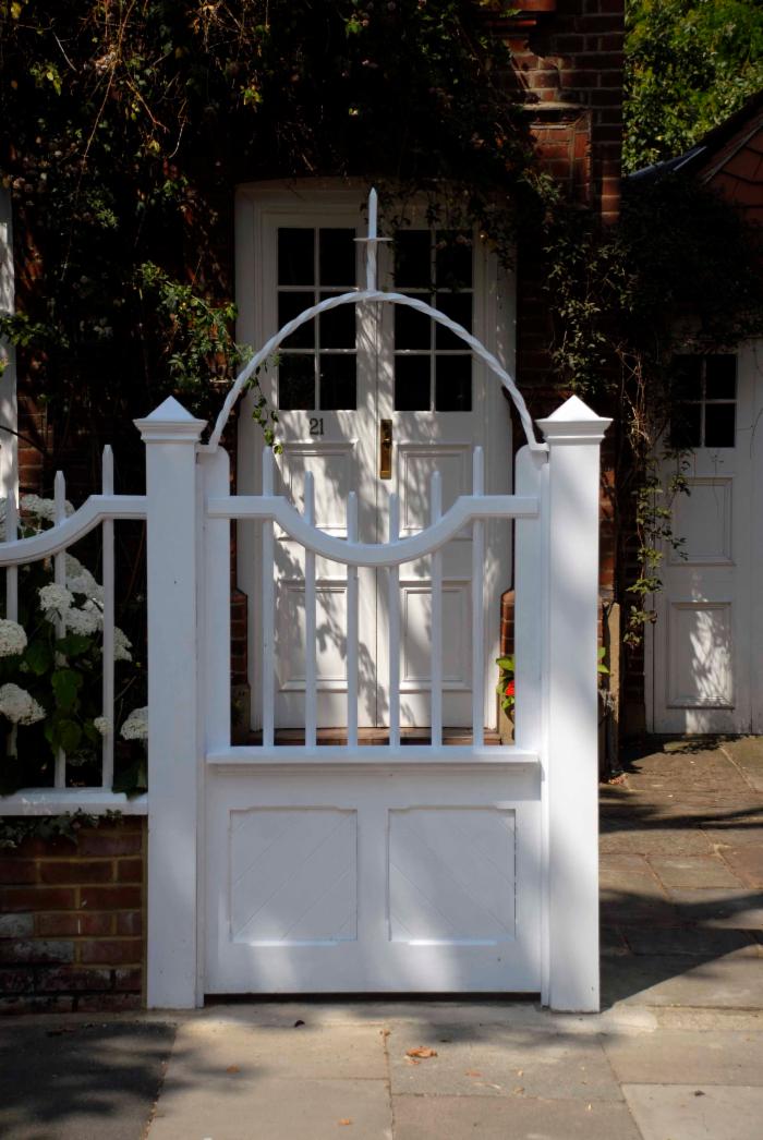 Traditional Bedford Park Gates and FencesMJSofLondon has been lately specializing in traditional Bedford Park fence and gate construction in Chiswick, London. Fence panels and gates are constructed from sustainably sourced , FSE certified hardwood to ensure long years of service. For construction of posts MJSofLondon is using air dried Oak, the wood which traditionally has been used for fences in Bedford Park conservation area. Thick layer of tar is applied to concealed areas of wood, which come in contact with ground and concrete, to prevent dampness penetrating wood and causing it to rot. All joints on the fence are made in a traditional way of using mortise and tenon joints and locked with beech wood dowels, combined with cutting edge technology 100% water proof glue.